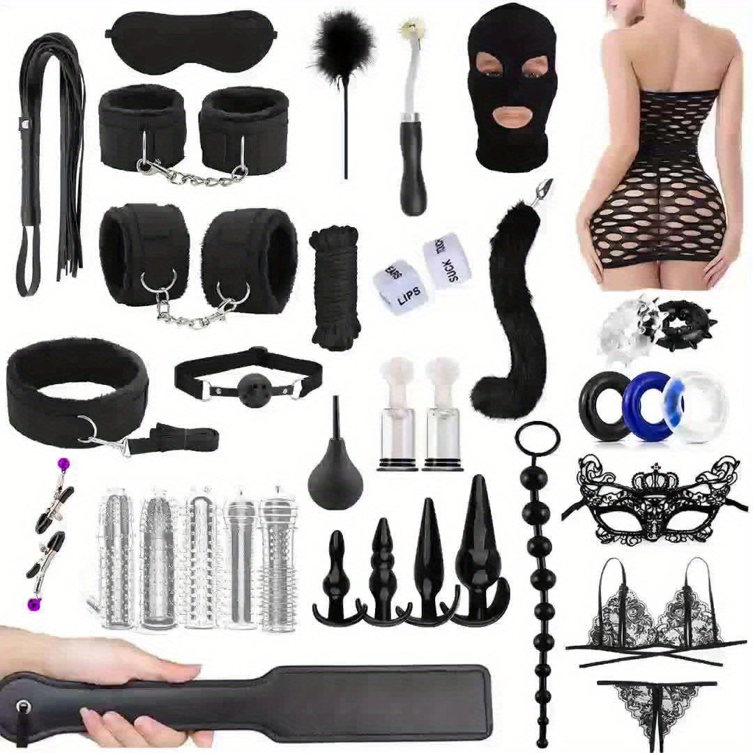 View compare14/38pcs Sexy Toy Set: Fox Tail Butt Plug with Bodycon Skirt, Mask for Role Reversal, Anal Plug, Bondage Restraint Tools, BDSM Adult Play Cuffs, Blindfold, and Spanking Accessories -Safe, Comfortable, and Fun