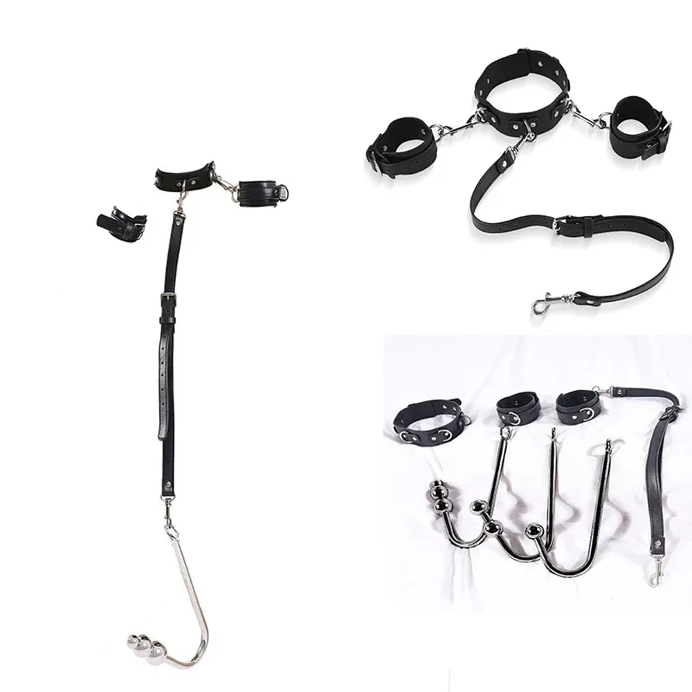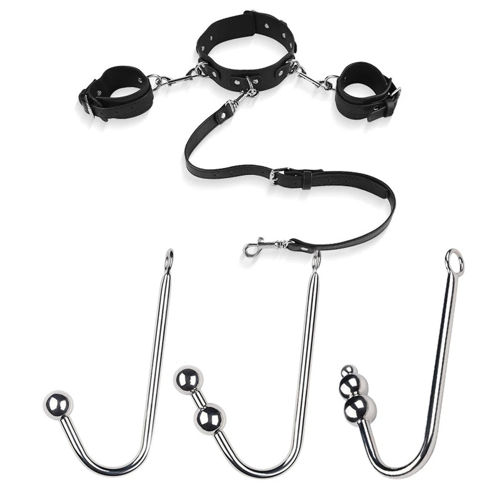 BDSM Sexual Couples Training Kit Metal Anal Hook Necklace Bondage Handcuffs Sex Toys for Women Sadomasochism Accessories