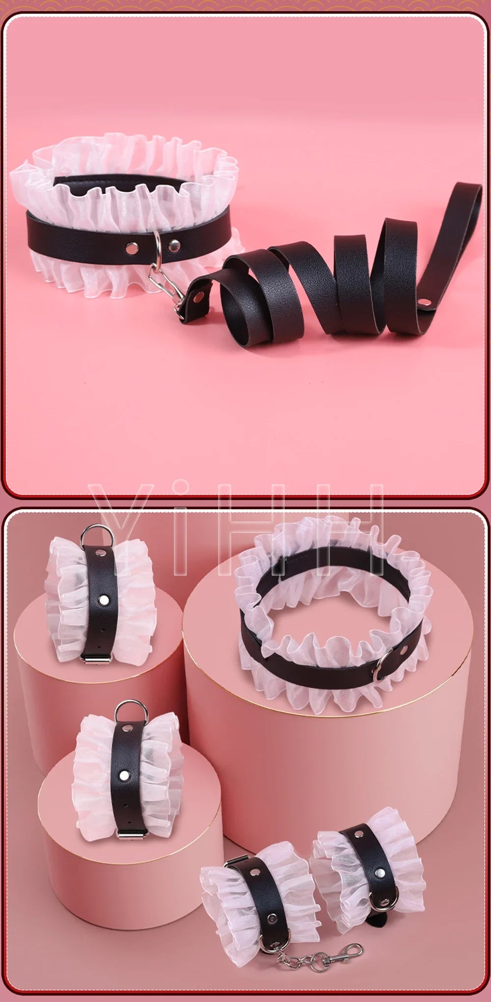 BDSM restraints cuffs and collar were adjustable in size for both men and women.
