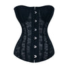 fashionable black gothic corset with metal buttons: strapless lace-up corset with steel bones and floral design