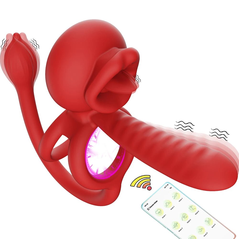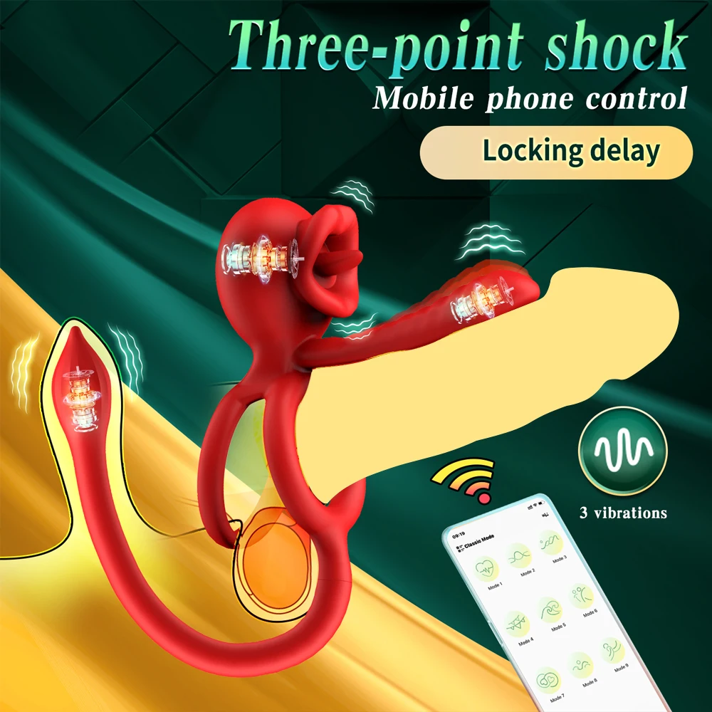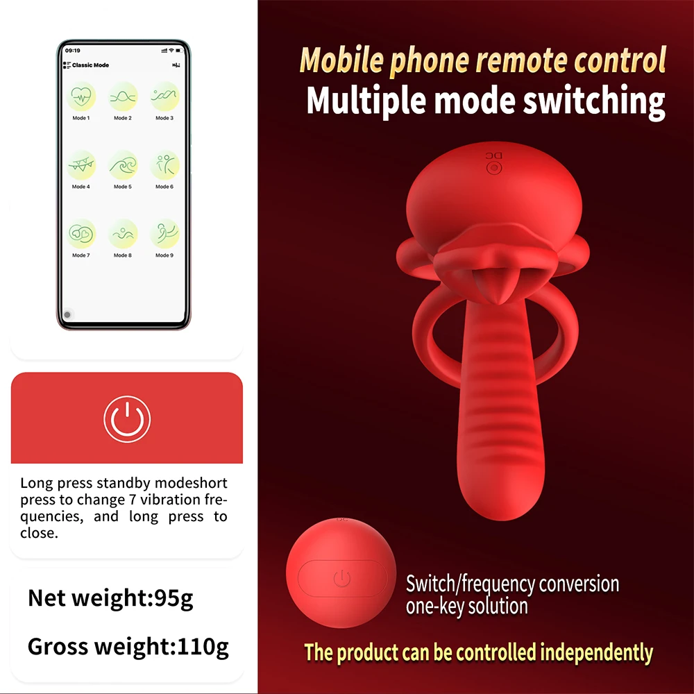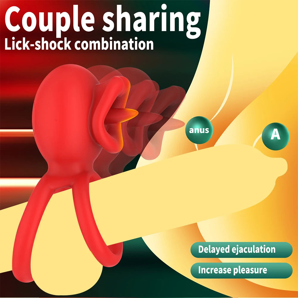 App Vibrating Penis Ring Vibrator with Sexy Licking Mouth G Spot Clitoral Stimulator Cock Rings Couples Adult Sex Toys for Men