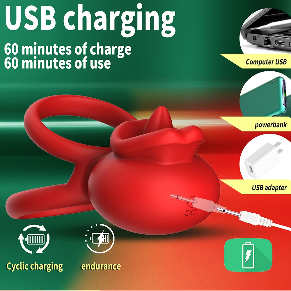 💚【Mouth And Tongue Shaped Couple Sex Toys】Uniquely designed to combine a mouth and tongue, this vibrating cock ring mimics real oral sex but is far more intense.