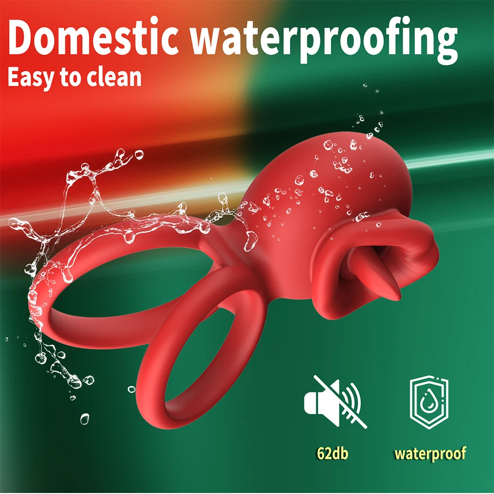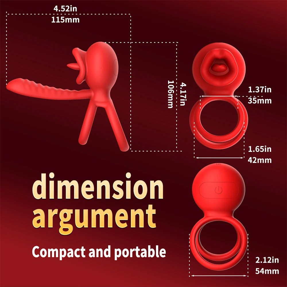 App Controlled Vibrating Cock Ring, Penis Ring Vibrator with Licking Mouth Pleasure,