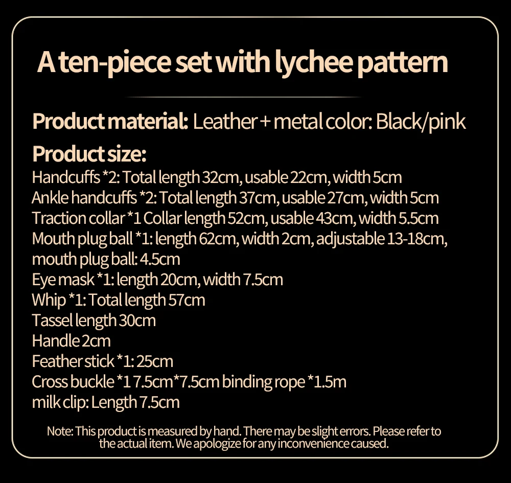 View compareBDSM Bondage Restraint Kit 10 Pieces Drawstrings Collars Eye Masks Mouth Balls Whips Cotton Ropes Nipple Clamps Rope for Couple