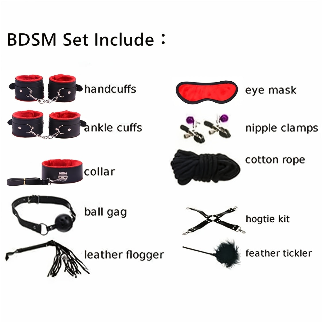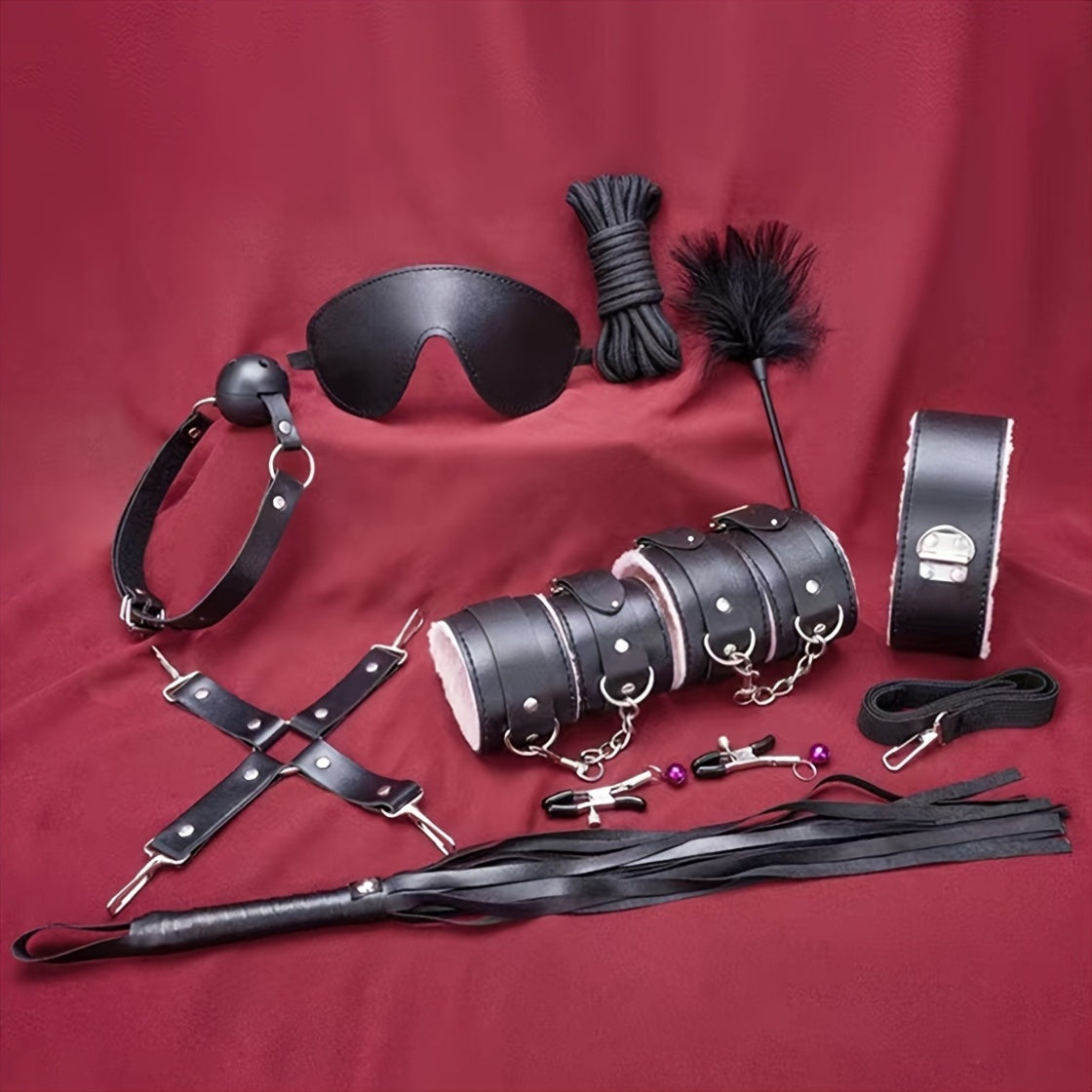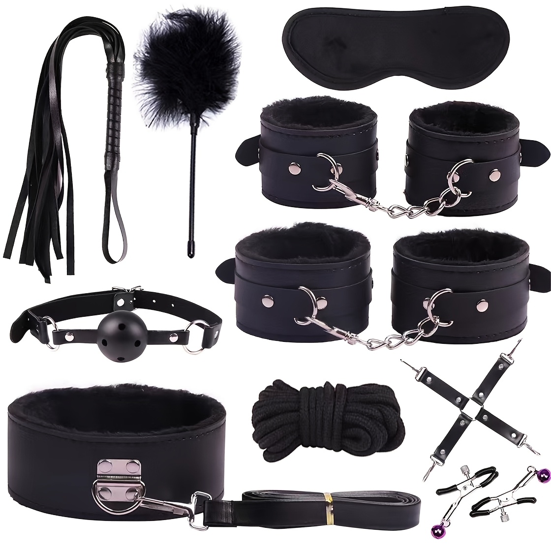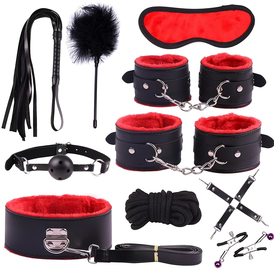 View compare10pcs/SET Bondage Restraints BDSM Kit Bondage Set, Adult Restraint Set Hands And Legs Straps Rope Mask Cuffs Gags Nipple Clips For Couples Men Women - Perfect Gifts For Party - Purple/Pink/Black/Red