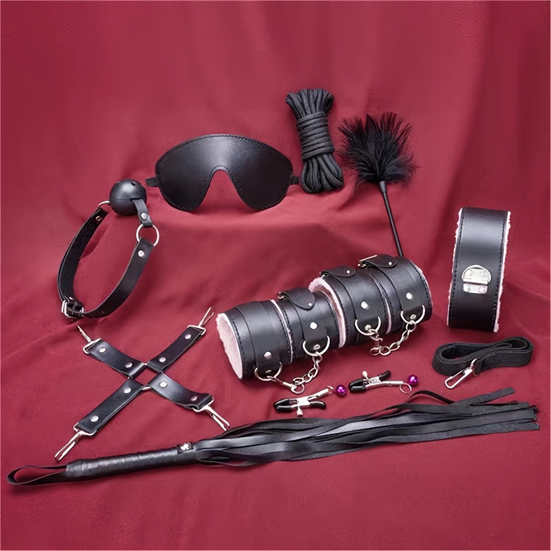 10pcs/SET Bondage Restraints BDSM Kit Bondage Set, Adult Restraint Set Hands And Legs Straps Rope Mask Cuffs Gags Nipple Clips For Couples Men Women - Perfect Gifts For Party - Purple/Pink/Black/Red