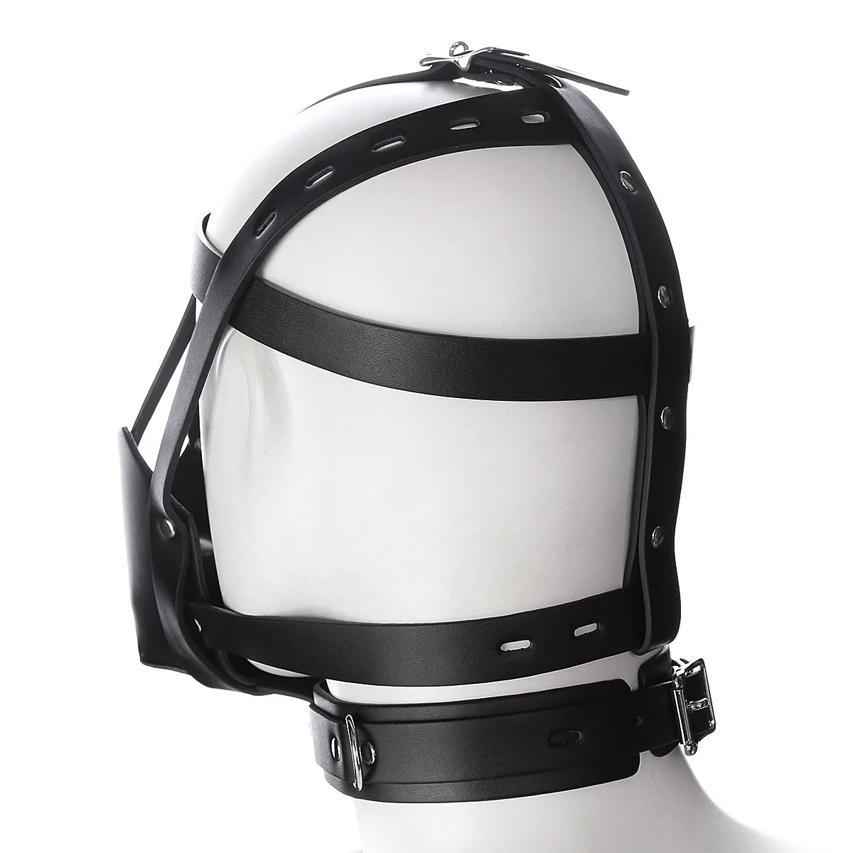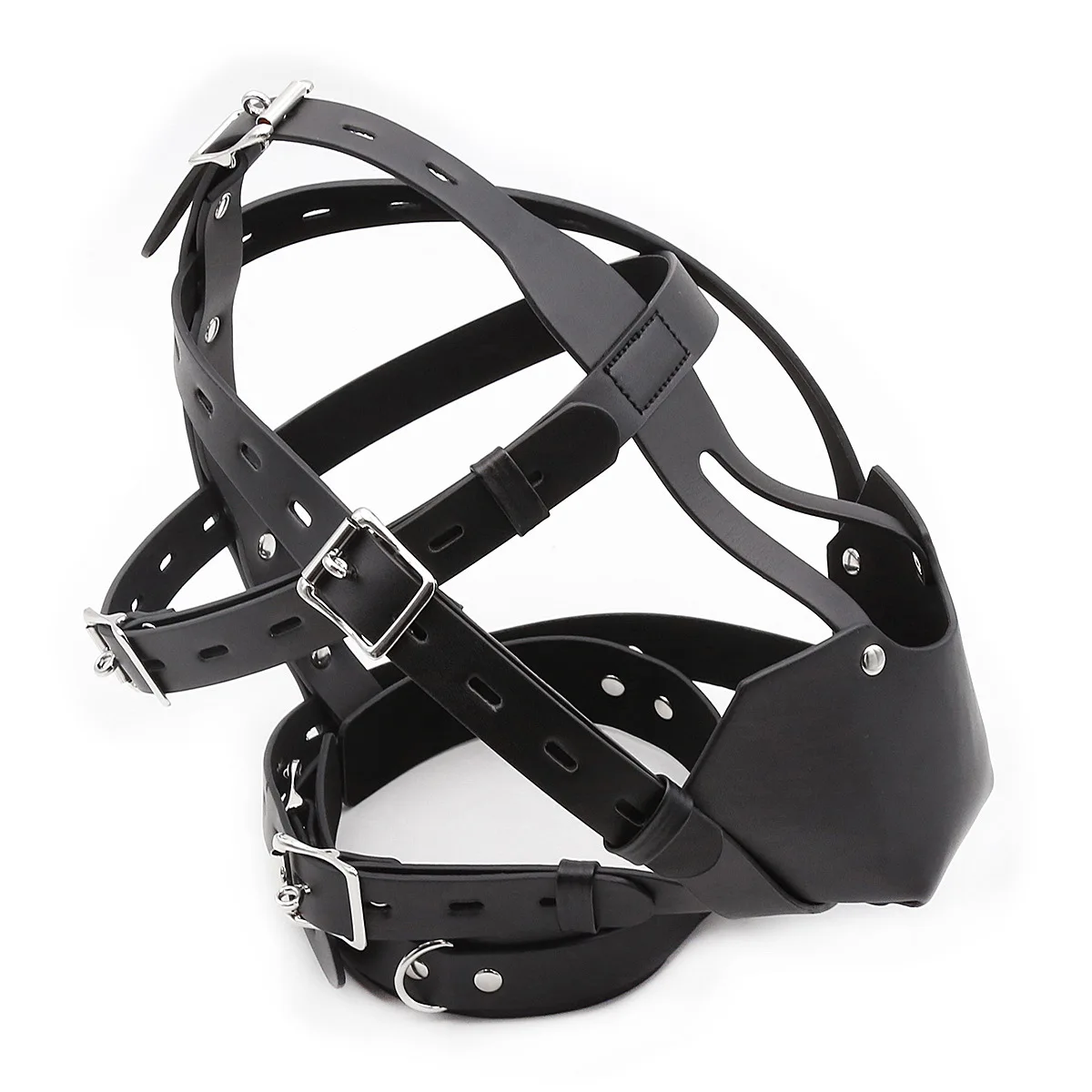 View compareBDSM Leather Head Harness Oral Mouth Ball Restraint Hood Mouth Strap Bondage Gag Half Face Mask for Couple SM Slave Roleplay