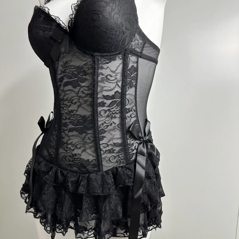 View compareBlack Corset Lingerie Dress Women Sexy Overbust Push Up Corset Lace Fishbone Corset Transparent Bustier Clubwear Lingeries 2025