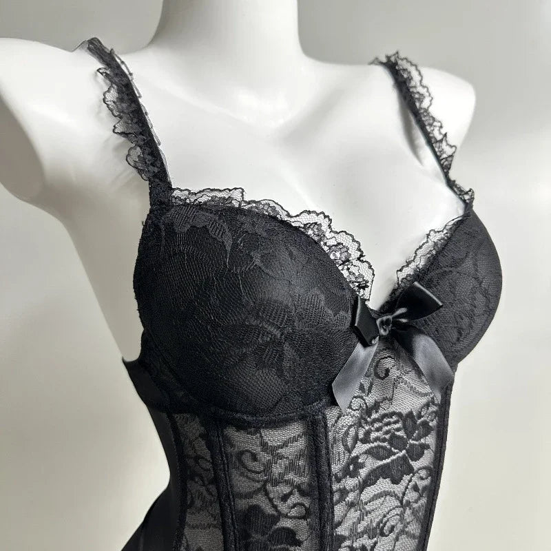 Black Corset Lingerie Dress Women Sexy Overbust Push Up Corset Lace Fishbone Corset Transparent Bustier Clubwear Lingeries 2025