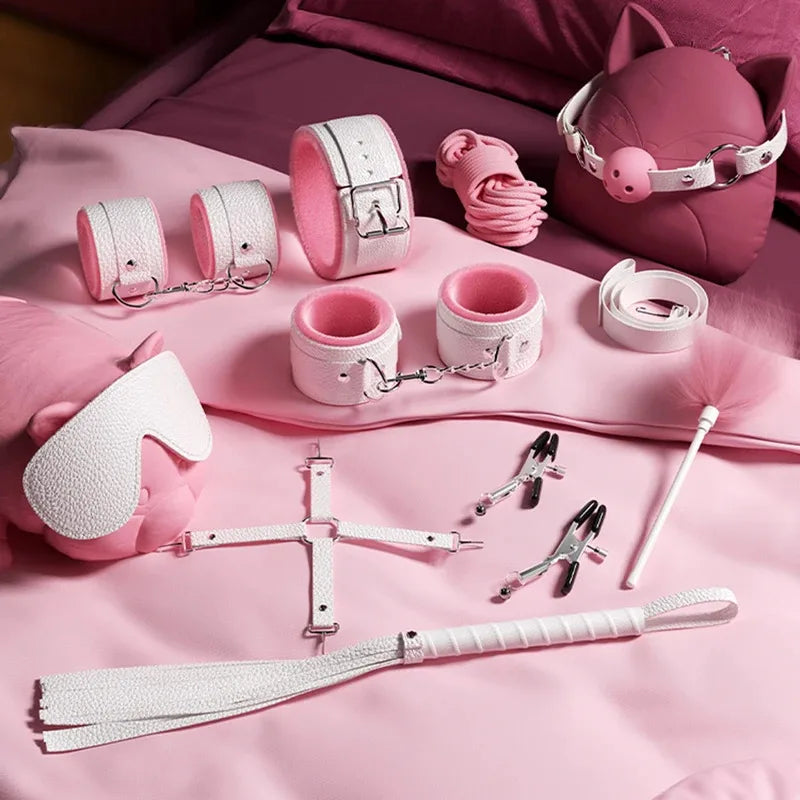 Deluxe Couples Bondage Kit Leather Whip Handcuffs BDSM Accessories for Women Adult Intimacy Toys BDSM Kit Set
