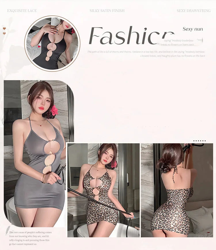 Lingerie dress Short skirt temptation leopard print hanging neck suspender one-piece pajamas set sexy womans clothing Sex shop
