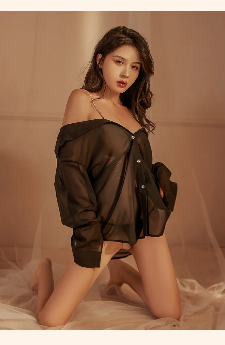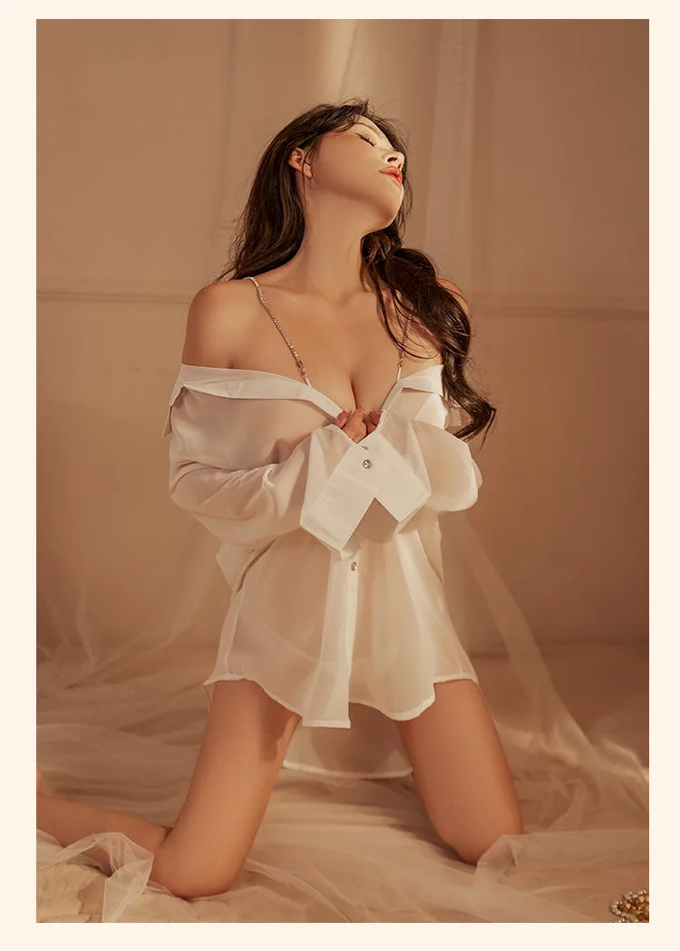 Lingeries Sexy Femme Secretariat White Shirt Large Transparent Office Girl Sexy Lingerie Erotic Woman Cosplay Role Play Outfit