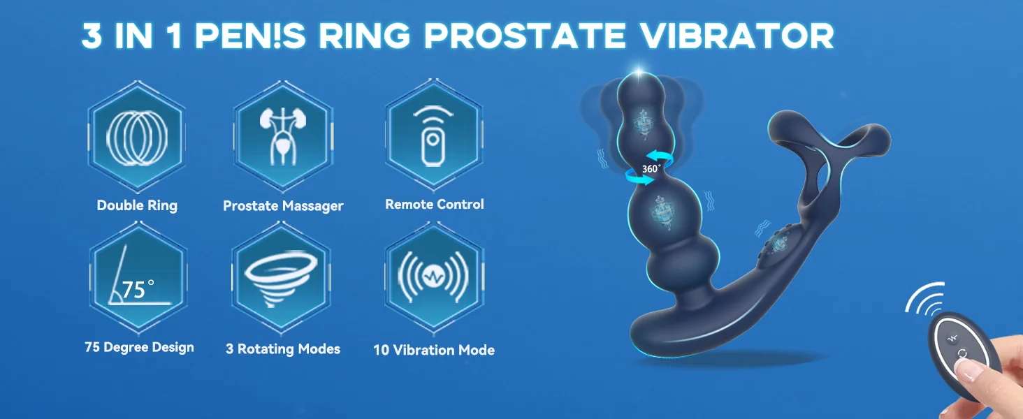 View compareMale Prostate Massager 360° Rotation Anal Vibrator with Penis Ring Butt Plug Remote Control Wearable Anus Sex Toy for Men Gay