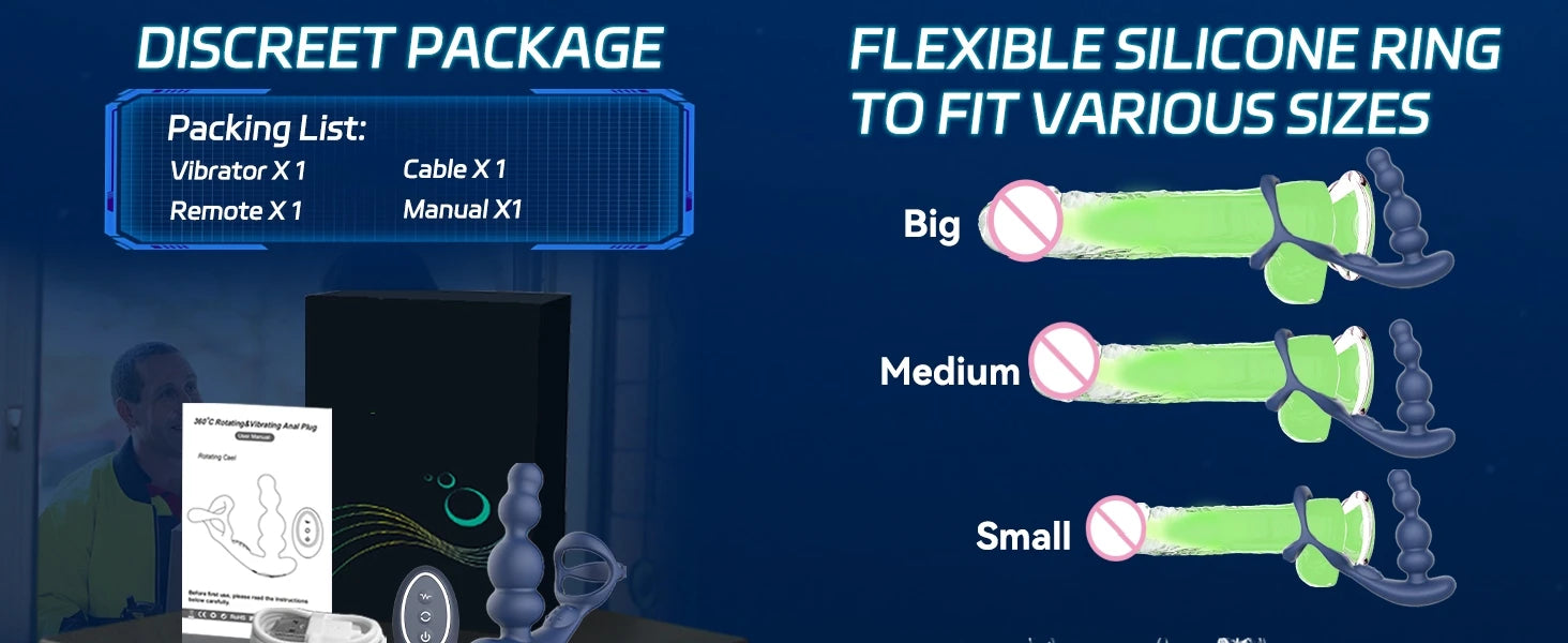 ✅【Body-safe & Flexible Silicone】The anal vibrator is made of silky-smooth body-safe silicone which is safe for internal and external use. The stretchy silicone cock ring is super durable and flexible to fit for various penis sizes.