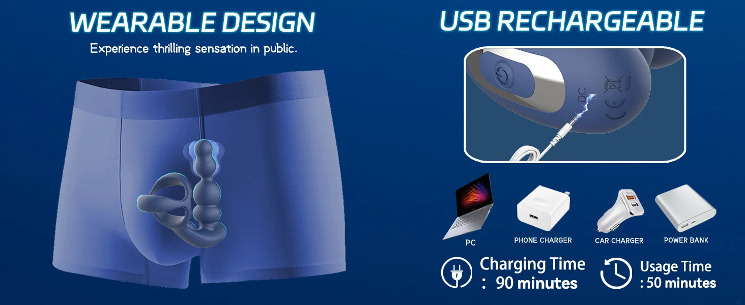 ✅【USB Rechargeable】With insert charging pin, you can easily recharge this male vibrator with your phone charger or power bank. You need to charge it for 90 mins and you can enjoy it for about 1 hour.