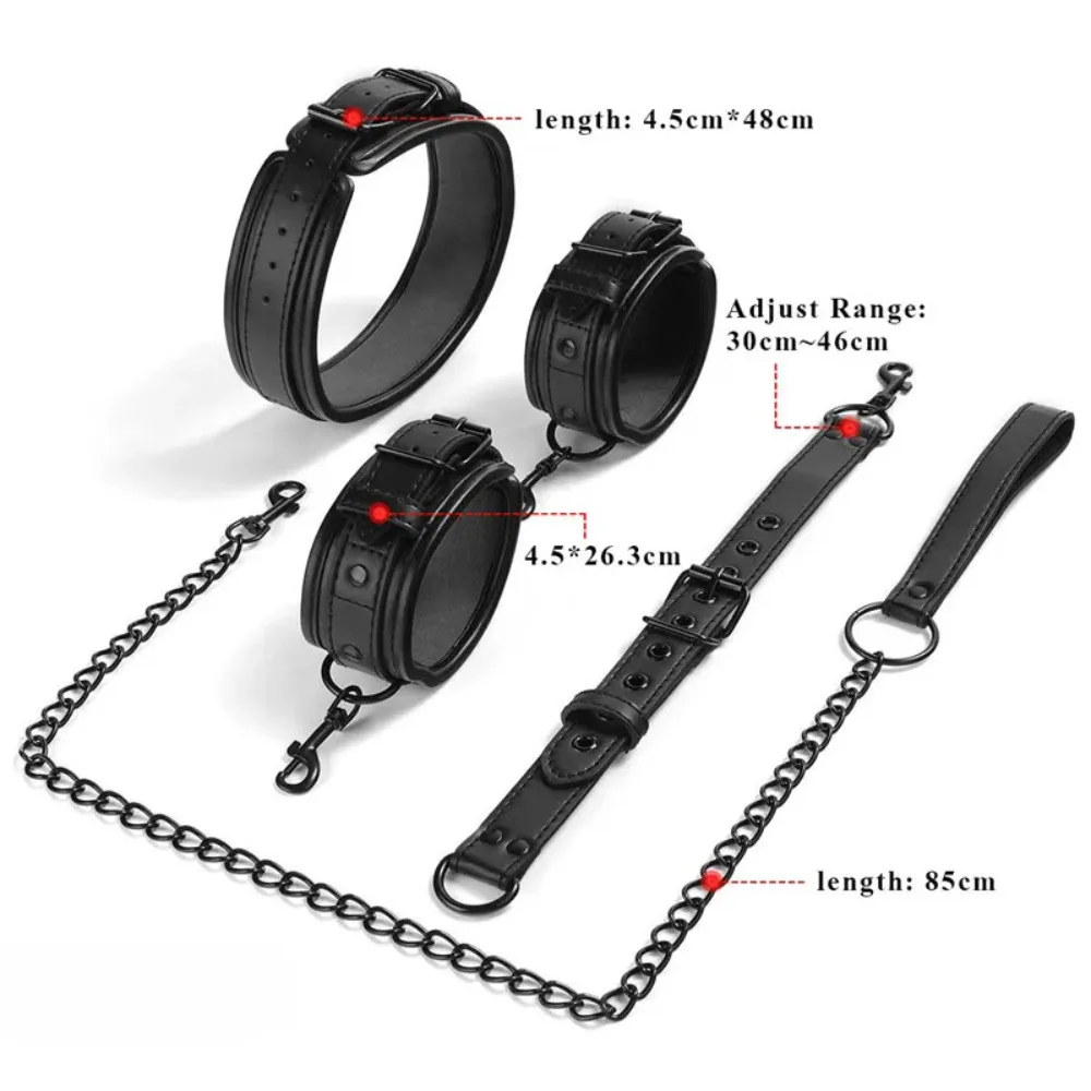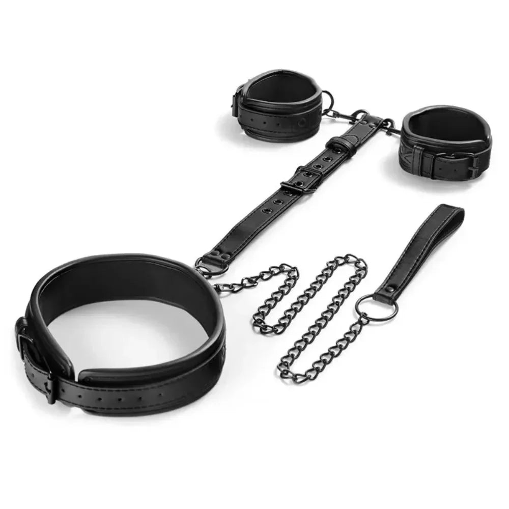 Neck-to-Wrist BDSM Bondage Restraints Kit – Couples Sex Toys with Chain Leash, Handcuffs & Collar for Slave Role Play